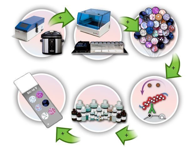 Bio SB offers a wide range of immunohistochemistry products (IHC), including rabbit and mouse monoclonal and polyclonal antibodies for IVD and ASR applications, as well as complete detection systems or their components. We offer both HRP and AP kits: The ImmunoDetector kits use the traditional 3-step Biotin-Streptavidin-Enzyme / Substrate-Chromogen technology while the PolyDetector and PolyDetector Plus kits have been developed using a proprietary tandem hyperlabelling technology used to directly label immunoglobulins with enzymes. This ensures consistent and reproducible immunostaining for all types of nuclear, cytoplasmic and membranal antigens, in different types of tissues or cells. We also offer for RUO Complete PolyDetector HRP/DAB kits for ER/PR, HER-2 neu and CD117 that include all reagents, solutions, tissue controls and reagent controls.
