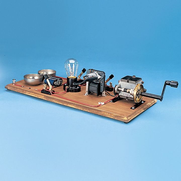 Demonstrates the transformation of mechanical energy to electrical, heat, light, and sound energy.